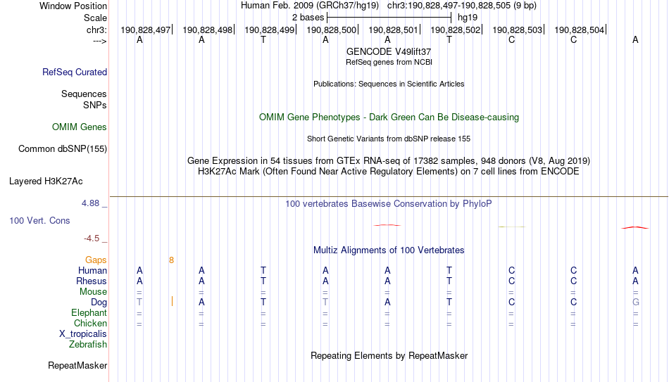 - RHOXF1[chr3:190828497-190828505]