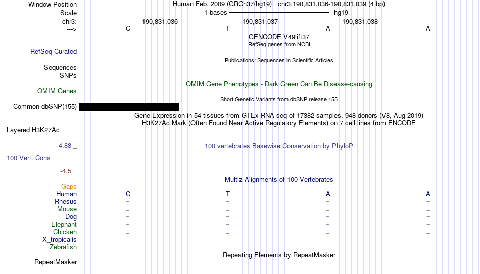 - MYB[chr3:190831036-190831039]