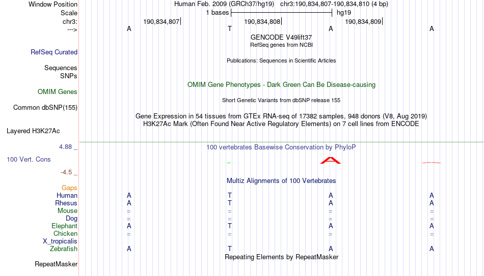 - MYB[chr3:190834807-190834810]