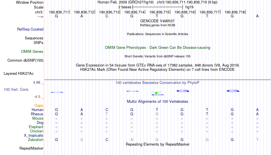 - TBX1[chr3:190836711-190836719]