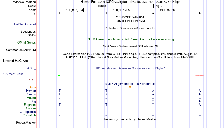 - MYB[chr3:190837764-190837767]