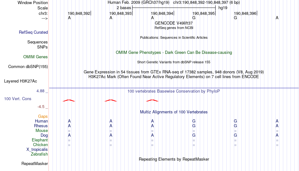 - ETS2[chr3:190848392-190848397]