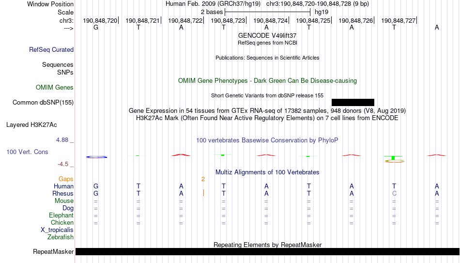 - FOXL1[chr3:190848720-190848728]