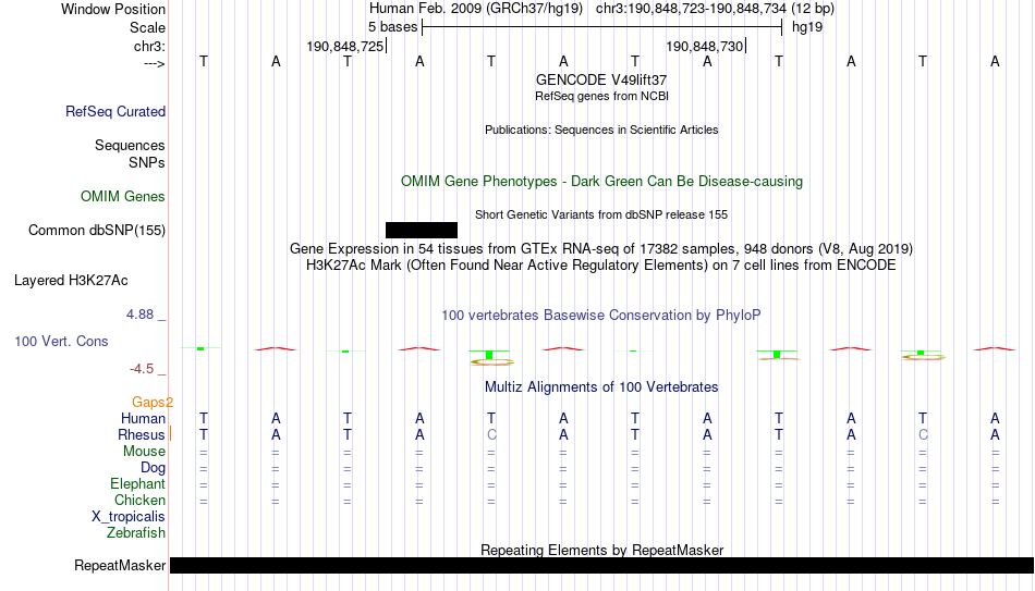 - FOXB1[chr3:190848723-190848734]