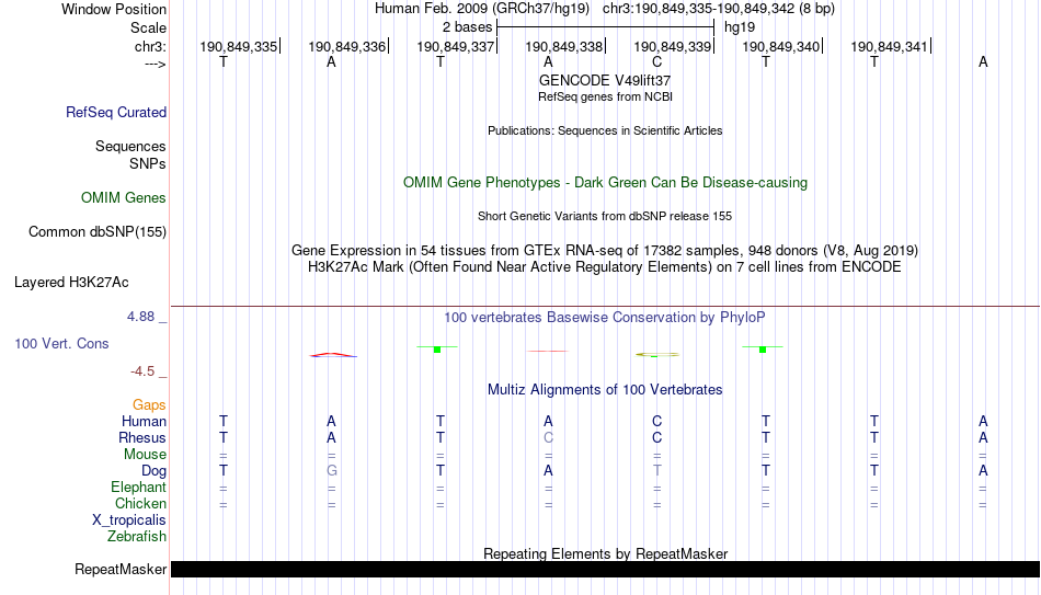 - NKX3-1[chr3:190849335-190849342]