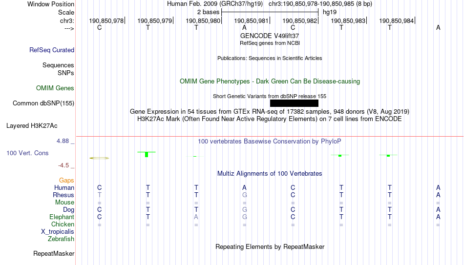 - NKX3-1[chr3:190850978-190850985]