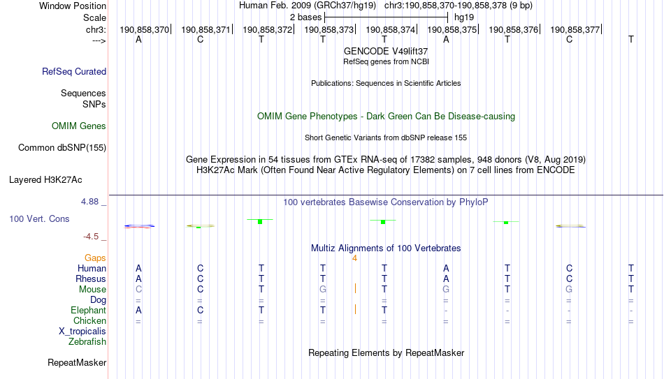 - GATA3[chr3:190858370-190858378]