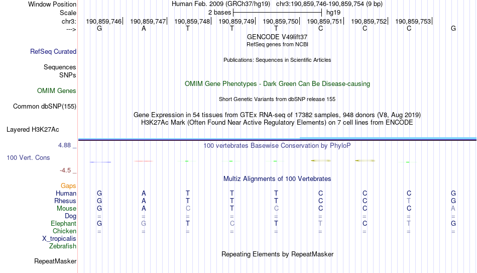 - FEV[chr3:190859746-190859754]