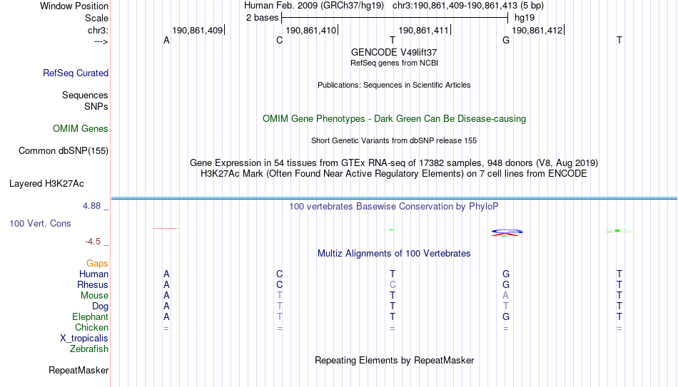 - NFE[chr3:190861409-190861413]