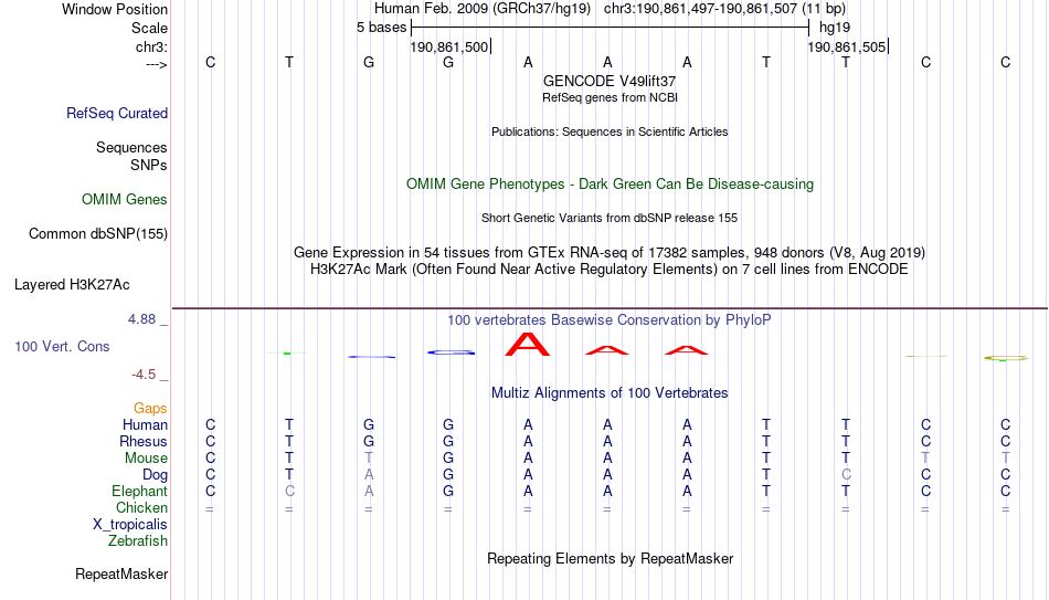 - REL[chr3:190861497-190861507]