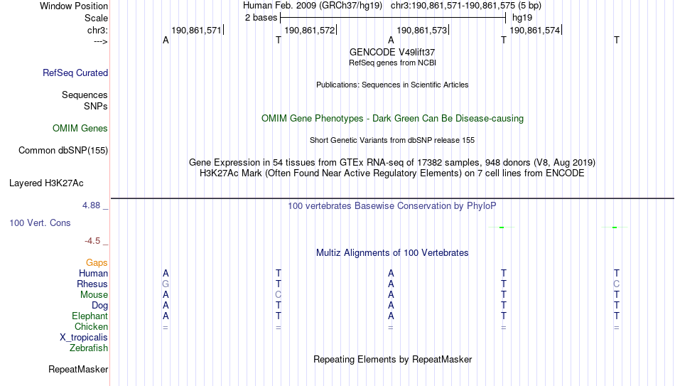 - YY1[chr3:190861571-190861575]