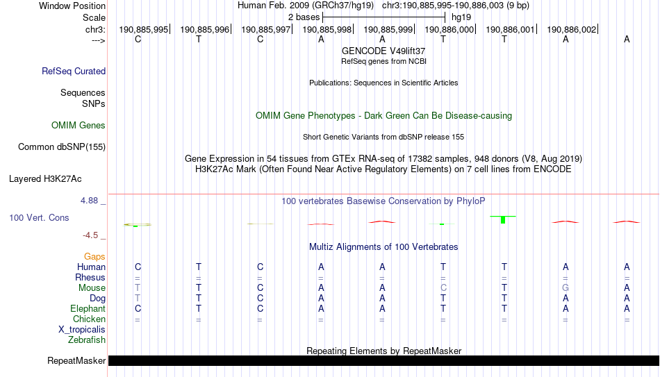 - RAX2[chr3:190885995-190886003]