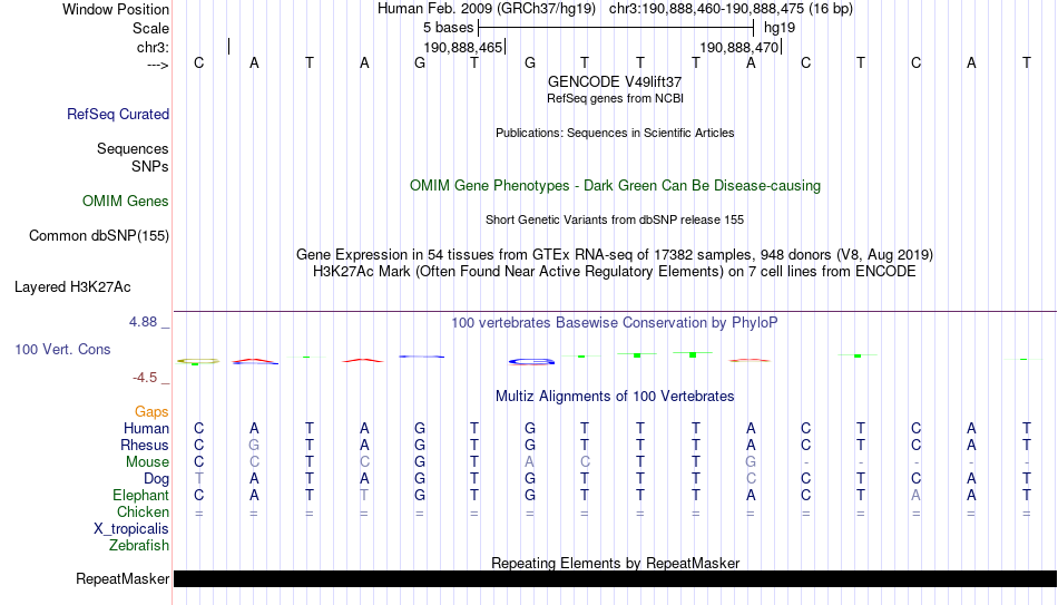 - FOXA1[chr3:190888460-190888475]