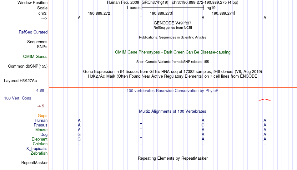 - MYB[chr3:190889272-190889275]
