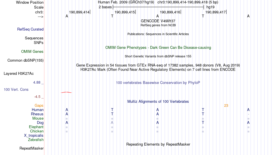 - TEAD2[chr3:190899414-190899418]