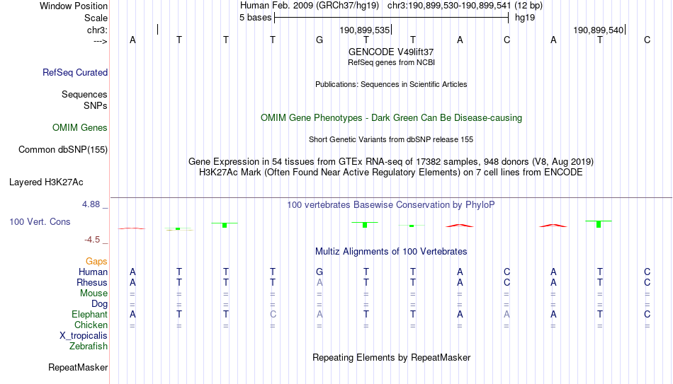 - DMRT3[chr3:190899530-190899541]