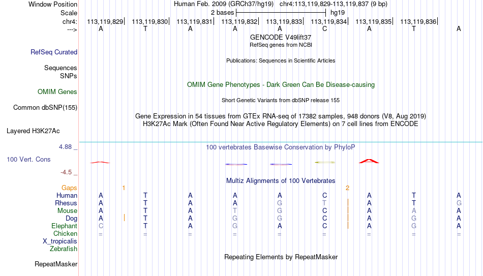 - FOXL1[chr4:113119829-113119837]