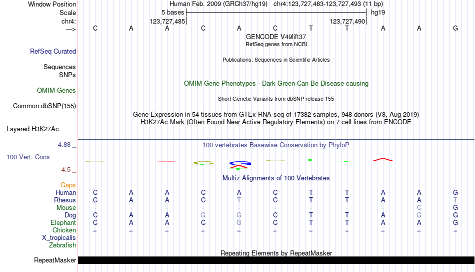 - NKX2-3[chr4:123727483-123727493]