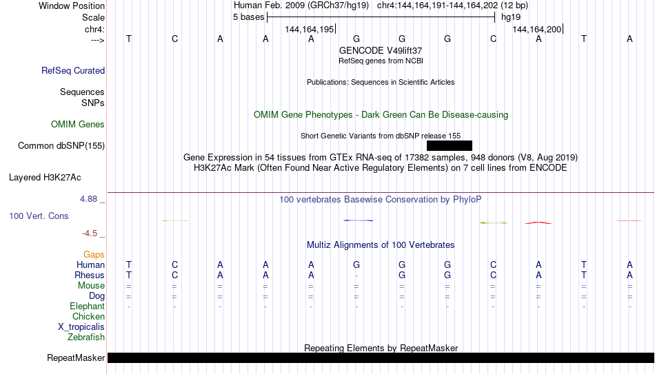 - ESRRA[chr4:144164191-144164202]