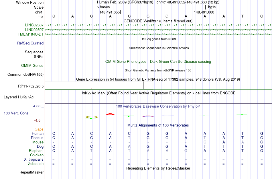 - ELF5[chr4:148491652-148491663]